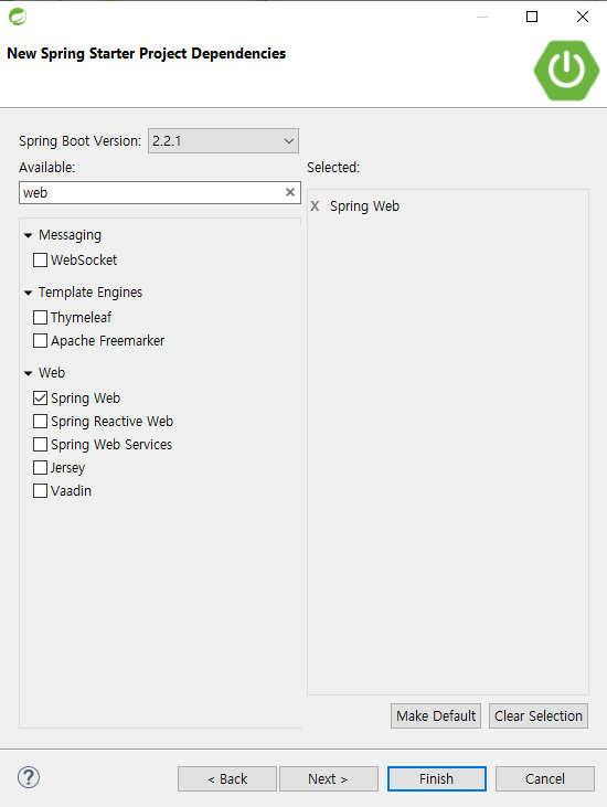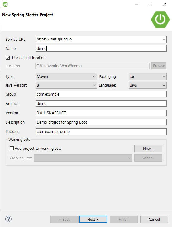 7. New - New Spring Starter Project(lib download-spring web) finish