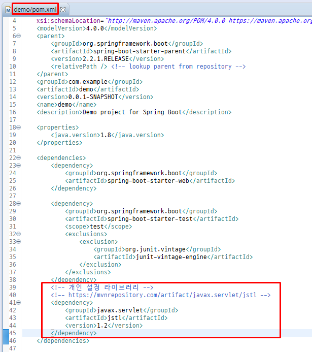 - 필요한 라이브러리가 있을 때는 mvnrepository에서 경로를 복사해 pom.xml에 붙여넣어준다.