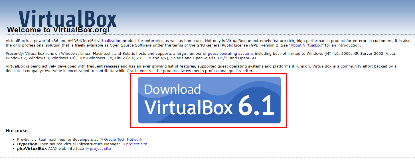 Welcome to VirtualBox.org! News Flash Important August 3rd, 2020We're hiring! Looking for a new challenge? We're hiring a VirtualBox senior developer (Germany/Europe/USA). New September 4th, 2020VirtualBox 6.1.14 released! Oracle today released a 6.1 maint
