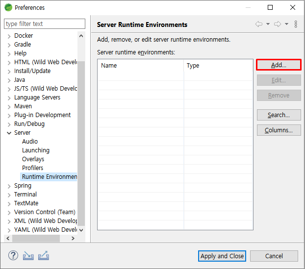 5. Window > Preferences > Server > Runtime Environments > Add...