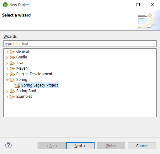 3. 설치가 끝나면 STS 재시작 후, spring legacy project 생성 가능