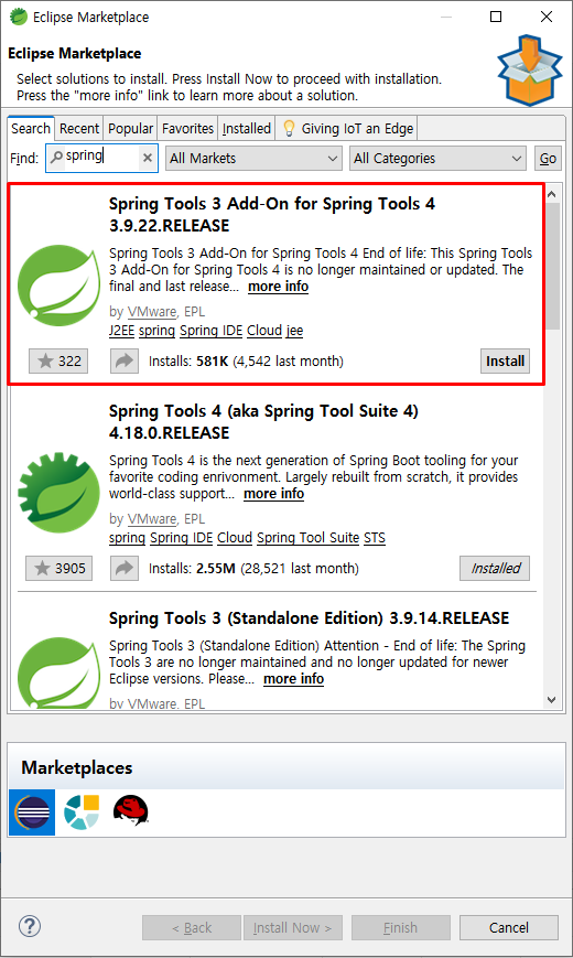 1. Help > Eclips Marketpalce > Spring Tools 3 Add-On for Spring Tools4 설치