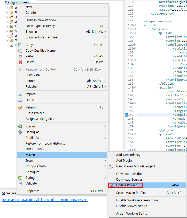 7. 마지막으로 프로젝트 우클릭 > Maven > Update Project 클릭