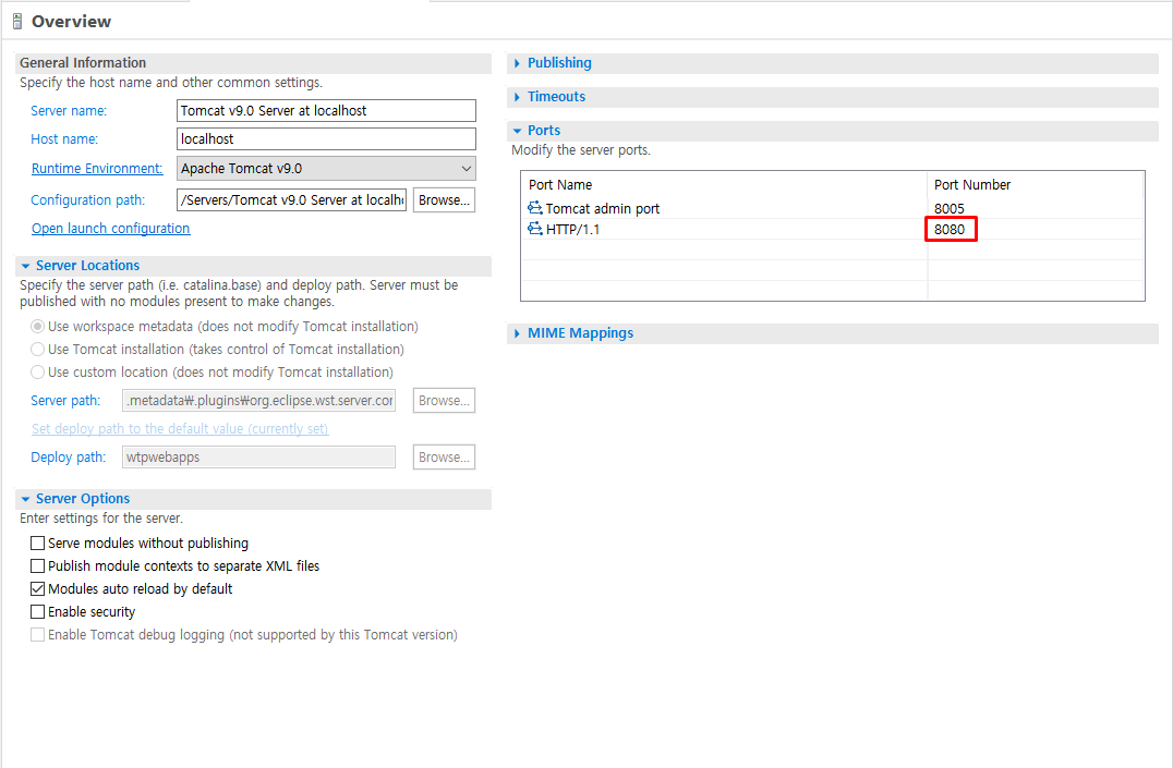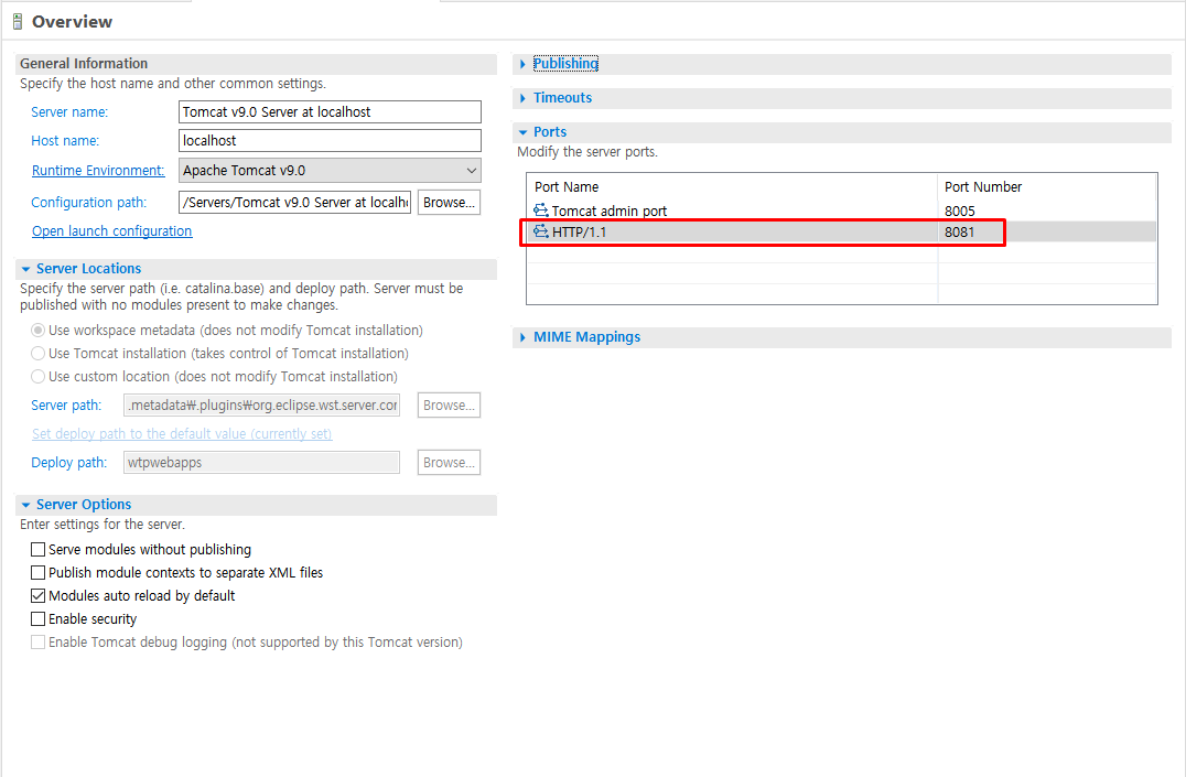 tomcat 서버의 기본 포트는 8080으로 Oracle 과 동일해서 충돌이 많이 발생하므로 포트를 8081으로 변경해준다.