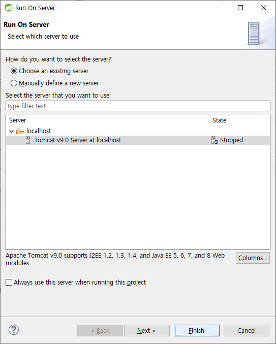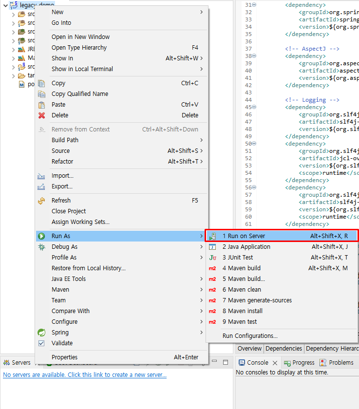 1. 프로젝트 우클릭 > Run As > Run on Server