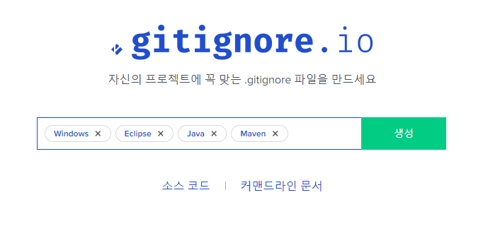 아래 URL에서 gitignore 서식 생성하여 파일을 추가한다. (.git 폴더가 있는 위치에 넣어준다.)