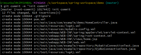git commit -m "커밋 메시지"