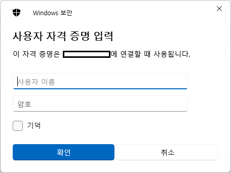 2. Windows 사용자 이름 / 암호 입력 > 확인 클릭