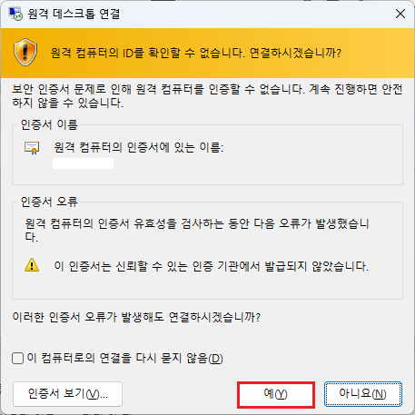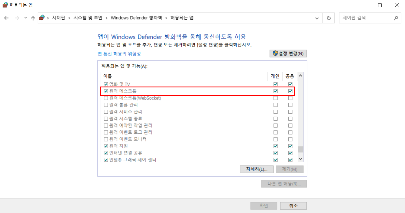 * 원격 데스크톱 사용은 보안에 매우 취약하므로 주의할 것